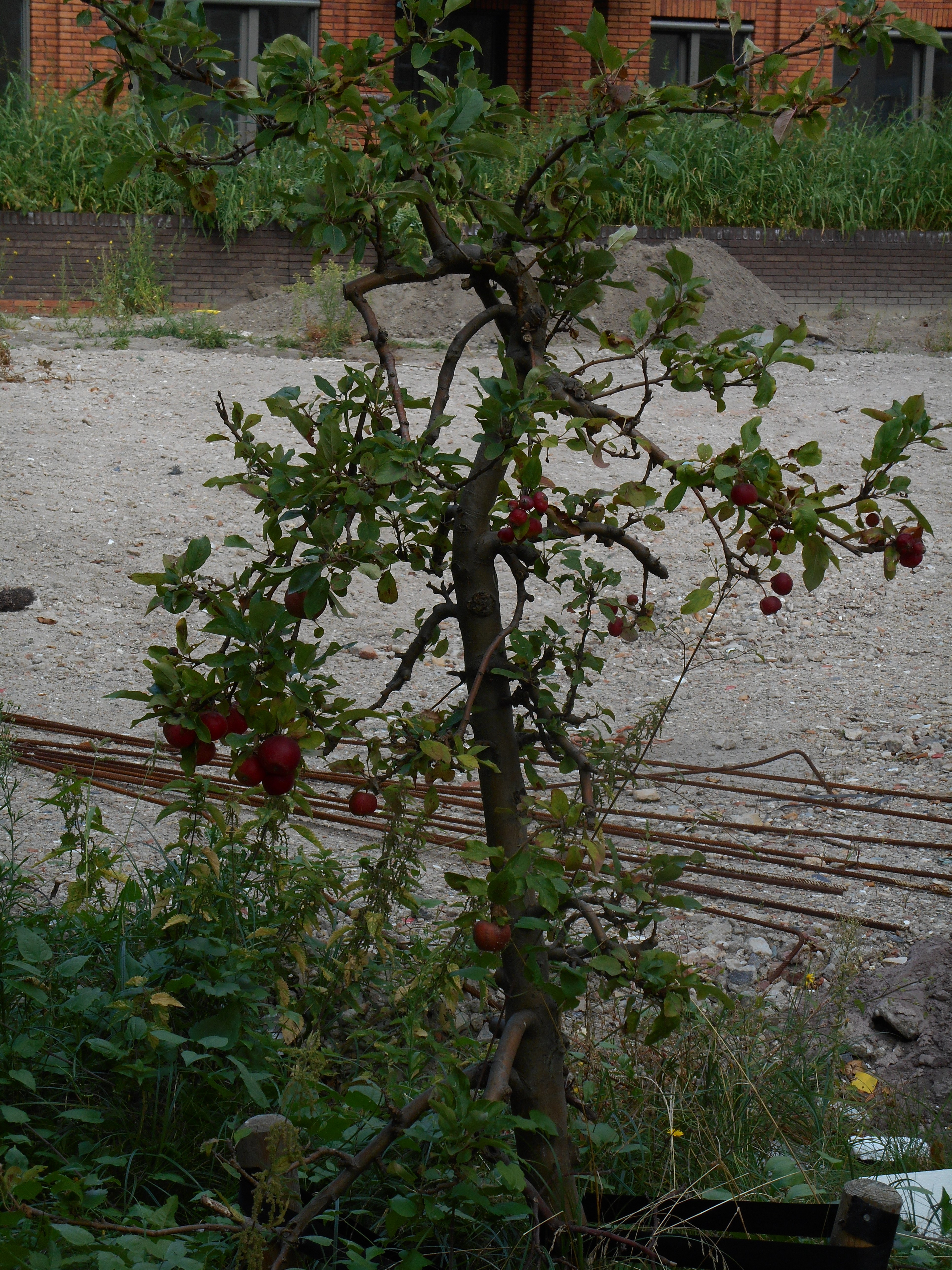 Te midden van het bouwgeweld heeft ons appelboompje ook dit jaar appeltjes gekregen!
